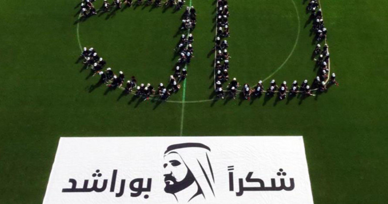 قام نحو 3000 طالبا بتشكيل لوحة كتبوا فيها بأجسامهم عبارة "50 عاما شكرا بوراشد"، جسدت الرؤية المميزة والمسيرة الناجحة لصاحب السمو الشيخ محمد بن راشد آل مكتوم نائب رئيس الدولة رئيس مجلس الوزراء حاكم دبي "رعاه الله".