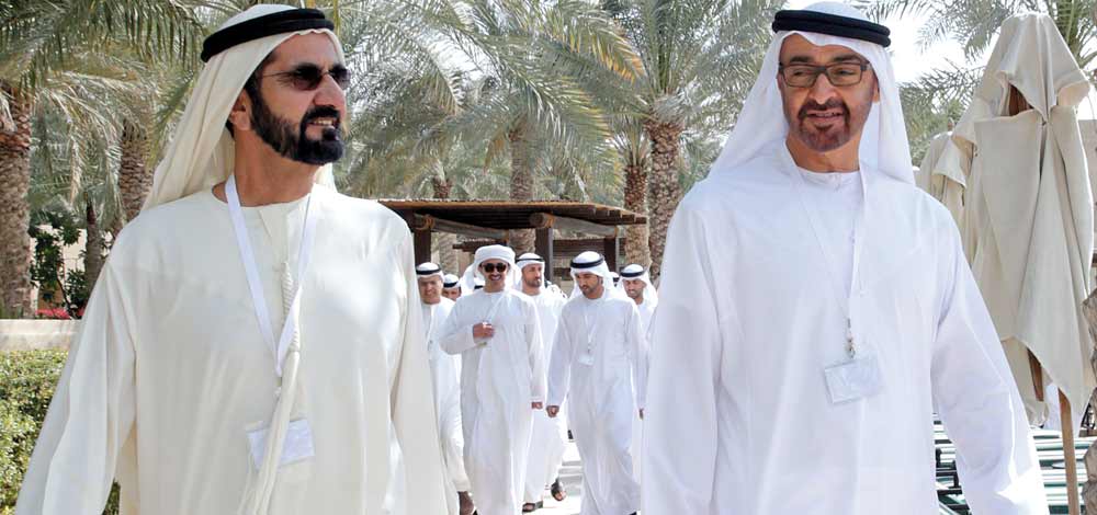 انطلقت صباح أمس أعمال «خلوة الإمارات ما بعد النفط بحضور صاحب السمو الشيخ محمد بن راشد آل مكتوم نائب رئيس الدولة رئيس مجلس الوزراء حاكم دبي، رعاه الله، وصاحب السمو الشيخ محمد بن زايد آل نهيان ولي عهد أبوظبي نائب القائد الأعلى للقوات المسلحة, حيث انتقل سموهما بين الجلسات وشاركا بمناقشة الأفكار والاقتراحات المطروحة.»