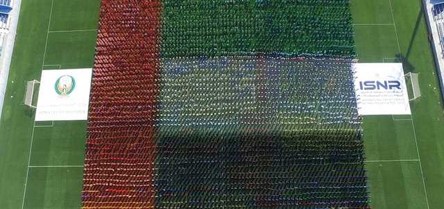حطمت فعالية "أكبر علم دولة" الرقم القياسي العالمي مشكَّلاً من تجمّع بشري بخوذة السلامة، أمس، بأبوظبي، في دخول موسوعة غينيس للأرقام القياسية.