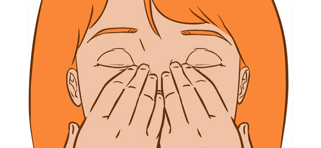 افرك يديك حتى تصبحا دافئتين ثم ضعهما على عينيك وهما مفتوحتان