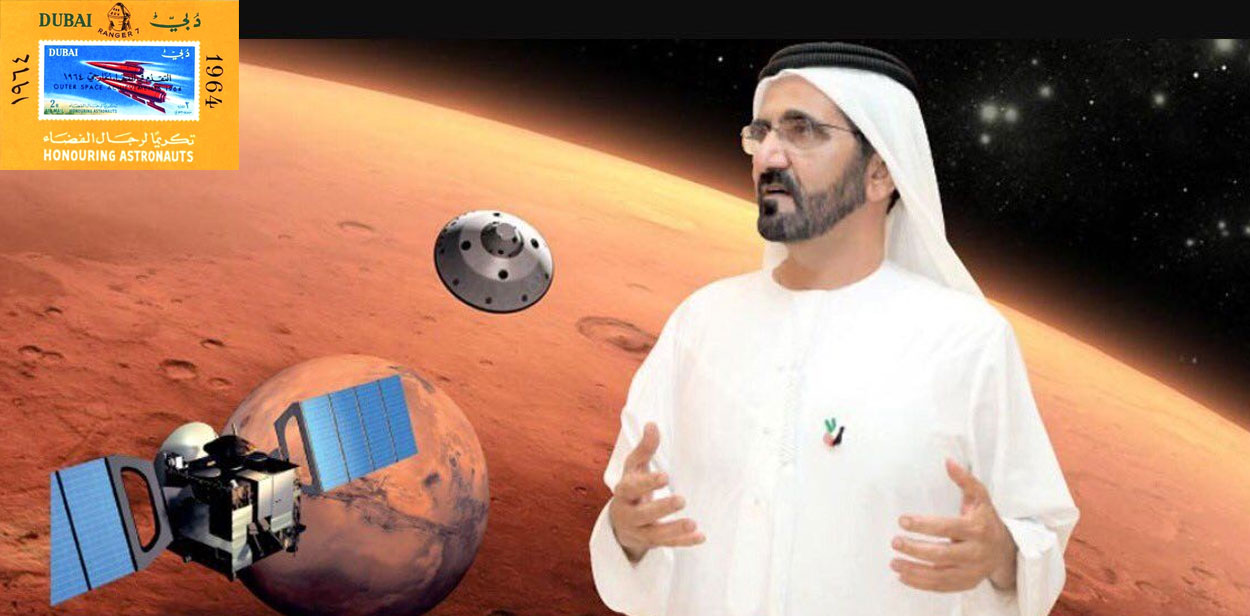 معلقاً سموه على صورة الطابع عبر حسابه في موقع التواصل الاجتماعي «تويتر»: «صورة لطابع بريدي أصدره والدي الشيخ راشد قبل 50 عاماً، تقديراً لعلماء الفضاء، وبداية لحلم أن ينضم شعبنا لهذه المسيرة».