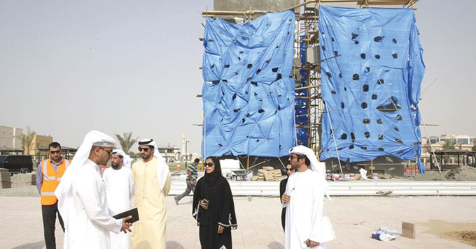 جاء ذلك خلال زيارة ميدانية لموقع النصب قام بها الشيخ راشد بن حميد النعيمي بحضور مروان عبيد المهيري مدير إدارة المشاريع بالدائرة وأحمد سيف المهيري مدير إدارة الزراعة والحدائق العامة بالدائرة والمسؤولين عن المشروع.