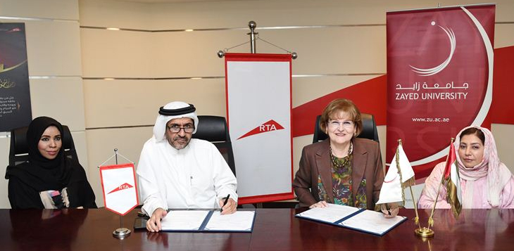 وقعت هيئة الطرق والمواصلات مع جامعة زايد بدبي مذكرة تفاهم، يتم بموجبها رعاية الهيئة لأصحاب الهمم من طالبات الجامعة المواطنات، وذلك في مجال التخصصات الدراسية ذات الصلة بعملها، وتوفير المزايا التي يحصل عليها الطالب المبتعث، مع قيامها بتوفير وظائف للخريجين في مجالاتها المعنية والمتخصصة، في إطار استراتيجيتها الرامية إلى تقديم الدعم لهذه الفئة وفق توجهات مبادرة "مجتمعي.. مكان للجميع" والتي أطلقتها حكومتنا الرشيدة.