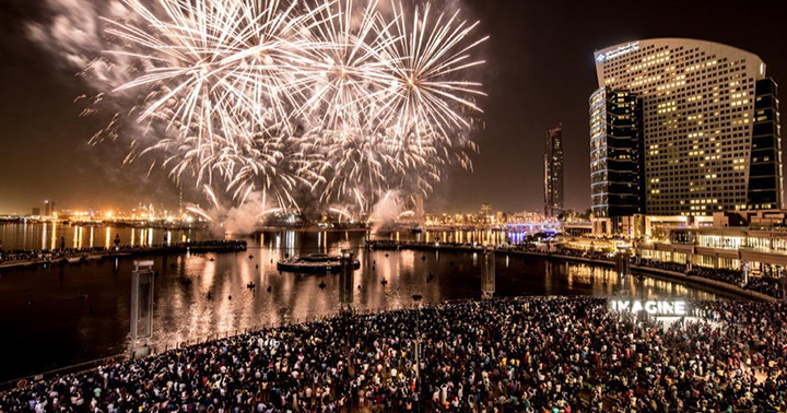 عروض الألعاب النارية في دبي فستيفال سيتي مول