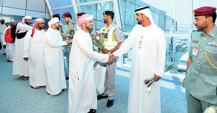 استقبلت مطارات الدولة أمس طلائع حجاج الإمارات بالورود والهدايا وسط أجواء احتفالية، تبارك أداءهم المناسك، وتهنئهم بالعودة سالمين إلى الوطن.