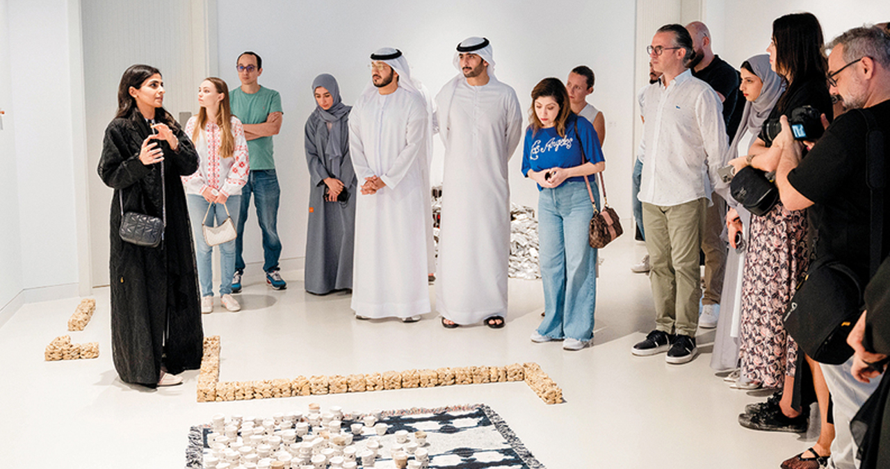 وأضافت أنها «سعت إلى التركيز على مفهوم السرعة في حياتنا، وتركت في الفناجين بعض القهوة للدلالة على الوقت، فيما كان العدد المستخدم يمثل الروزنامة الهجرية لسنة كاملة». واستعانت الهاشمي بالسيراميك في عملها، وأحاطت الجلسة بفناجين على شكل صناديق، لتبرز نمط الحياة كاملاً، وإلى جانب فناجين القهوة، قدمت حبات التمر على رفوف مستعيدة قصة شخصية حدثت معها في أميركا، إذ كانت وحدها وطلبت منها صديقة أن تشاركها الإفطار بحبة تمر، فكانت هذه الحبة ثمرة تواصل، مشددة على أن الهوية لابد أن تظهر في أعمال المبدع.