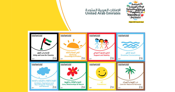 وأصدرت مجموعة بريد الإمارات الطوابع التذكارية، بالتزامن مع الاحتفالات باليوم الدولي للسعادة، خلال فعالية احتفالية، نظمها البرنامج الوطني للسعادة والإيجابية ومجموعة بريد الإمارات.