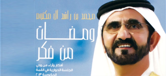 والكتاب، أفكار وآراء من وحي الجلسة الحوارية في القمة الحكومية 2013" للشيخ محمد بن راشد آل مكتوم، وكانت فرصة جيدة لقراءة بعض الجوانب في أفكار وشخصية سموه، الذي استطاع أن يقود تجربة تنموية خليجية ناجحة وفريدة، أصبحت أنموذجا يحتذى حتى من قبل دول بأهمية وتقدم ودقة اليابان.